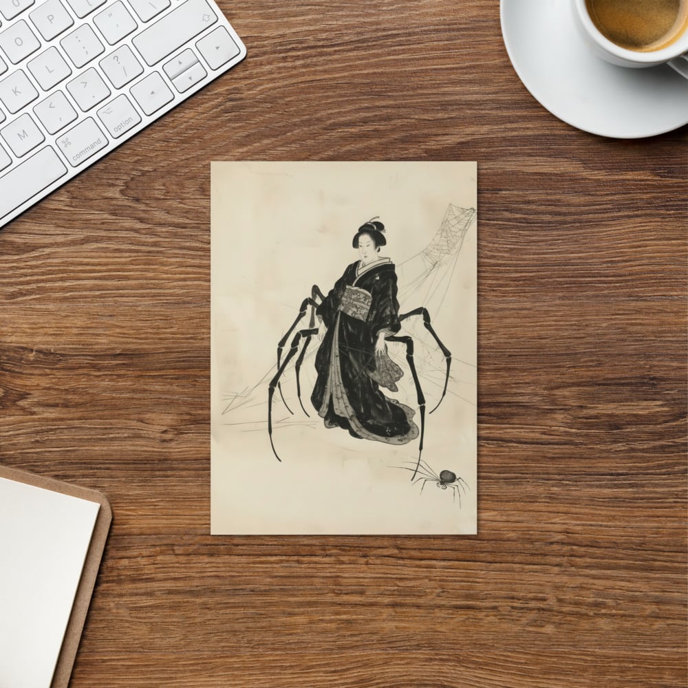 Though not directly part of Zen, Jorgumos tale reflects Zen themes of illusion and entanglement a metaphor for how desire and delusion can trap us in unseen webs. Printed on premium matte cardstock and left blank inside, the card is perfect for greetings, Halloween seasonal messages, or collectors of Japanese art and folklore.